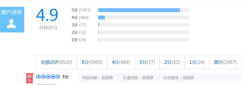 某条三亚游产品已有超过6500条点评