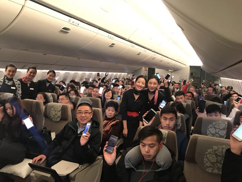 “恭喜您成为首批体验中国民航机便携式电子设备开放使用的幸运旅客!”