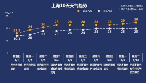 本周上海阳光稀缺,多阵雨天气,周中后期气温有所回升,但是不会出现之前30℃以上的暑热天气。总体来说,本周最高气温都是“2”字打头,加上阴雨相伴,阵阵凉意袭来。