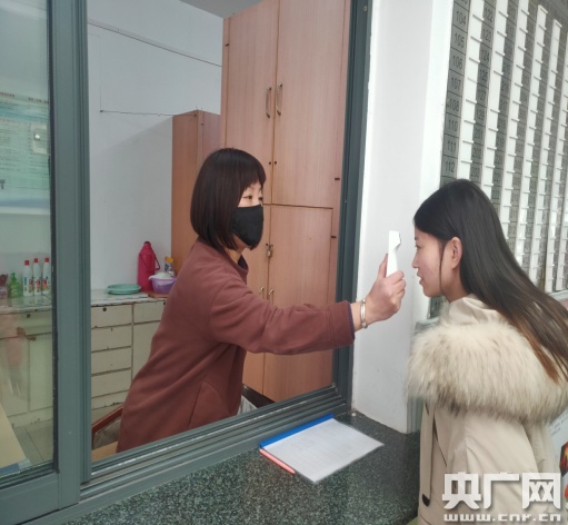 虽然寒假期间14舍只有3人留校,但是只要有人在,她就要负责保护好楼里的每一名学生的安全,做好门卫的守护工作:登记学生的出入记录,负责给学生测量体温,每天早上给楼宇学生经常出入的地方进行消毒工作,从不含糊。