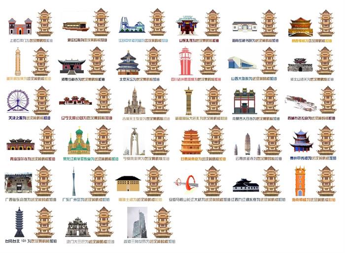 一省包一市聚力助武汉,用像素画的方式绘出了各自的地域代表建筑,来为武汉加油。
