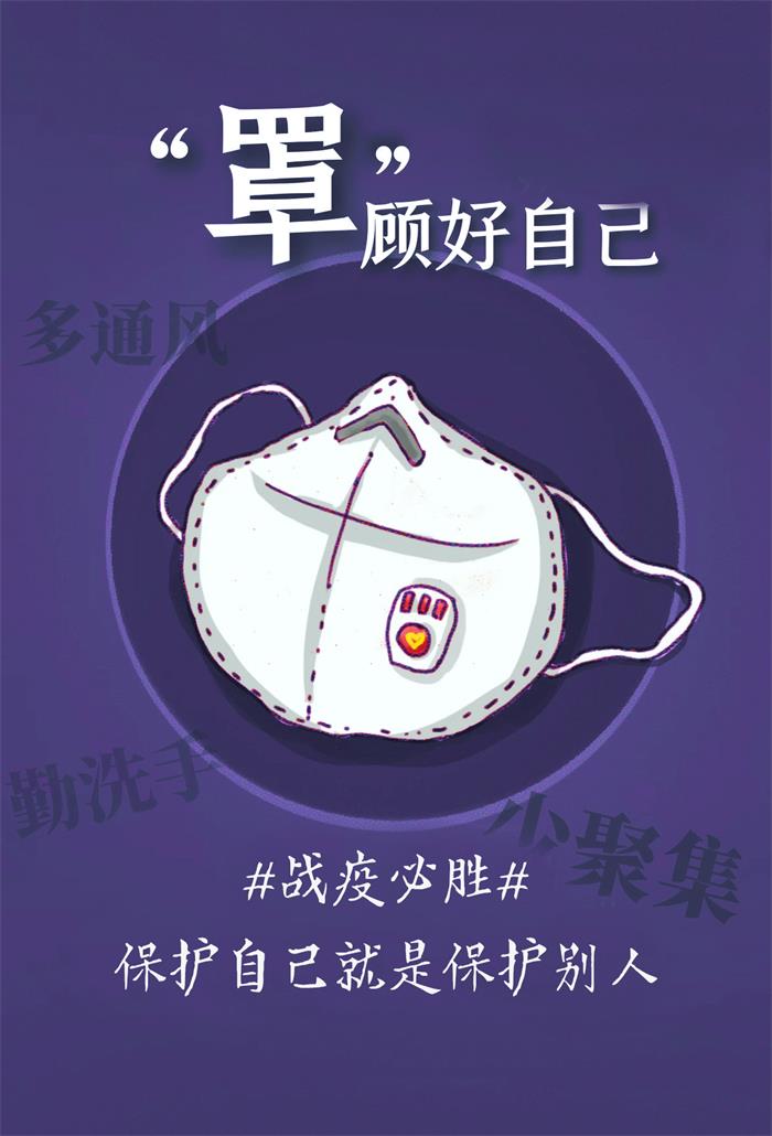 保护好自己就是保护好他人!通过海报,宣传科学防护知识,提醒大家出门戴口罩,多通风,勤洗手,少聚集。