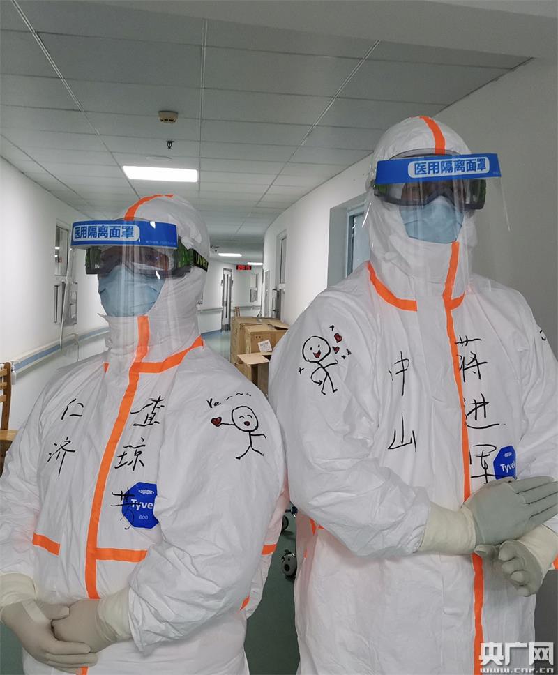 天气暖和穿防护服后蒸桑拿的感觉越来越明显(央广网发 仁济医院供图)