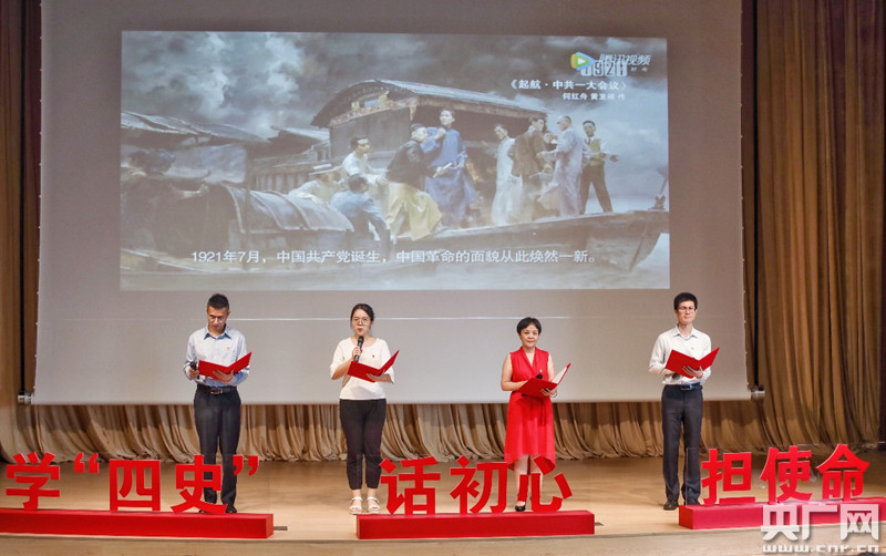 教师党员代表朗诵《中国共产党颂》(央广网发 华东理工大学供图)