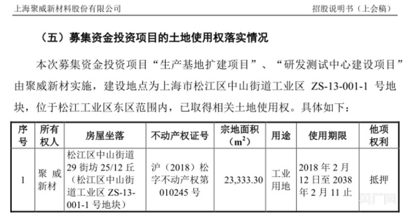 招股书披露,聚威新材募集资金投资项目是生产基地扩建项目、研发测试中心建设项目,其中,生产基地扩建项目建设地点为上海市松江区中山街道工业区ZS-13-001-1号地块,位于松江工业区东区范围内,利用现有土地扩建厂房,项目建成达产后,可实现年产16000吨改性工程塑料的生产能力。还披露,该项目总投资额为31209.74万元,主要用于建筑工程费、设备及软件购置费、安装工程费。项目建设期拟定为3年。