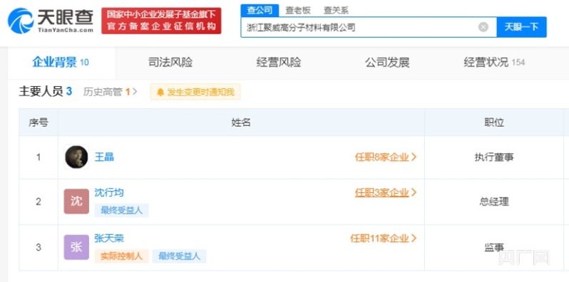 但工商资料显示,沈行均还是福建伟泰高分子新材料有限公司(简称“福建伟泰”)的经理,持股比例为30%。福建伟泰的经营范围包括:生产、销售高分子新材料等,与浙江聚威属同业公司。
