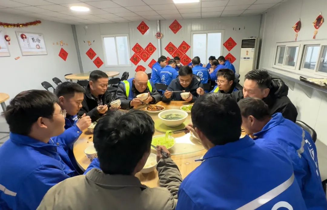 施工方现场项目经理张榜武介绍,工地在除夕为员工准备了丰盛的年夜饭,并组织文艺表演、抽奖等活动。“在这里,和工友们一起,也有过节的气氛。”工人齐玉亭说。