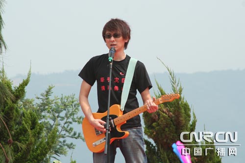 台湾超人气组合信乐团今天也来到现场,为灾区群众奉献了《永不放弃》和《不死心还在》两首热情洋溢的歌曲,希望能为灾区群众加油鼓劲,渡过难关