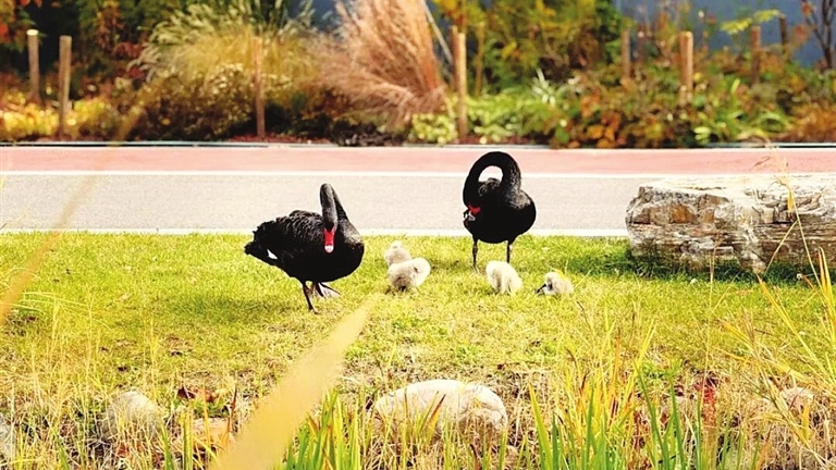 今年10月以来,园内已经迎来三对黑天鹅“爸爸妈妈”。