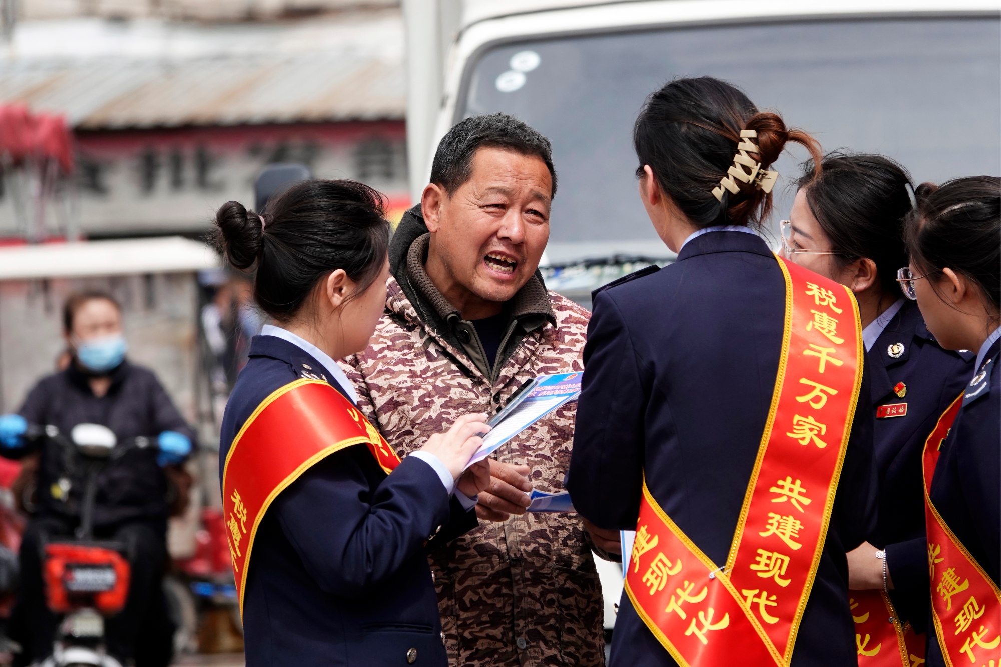 花开时节,第32个全国税收宣传月如期而至。每年4月的全国税收宣传月,已成为税务部门与社会各界的一场默契“约会”。连日来,国家税务总局新绛县税务局的宣传小分队兵分多路,进市场、入门店,下桃园、进菜园,围绕“税惠千万家 共建现代化”主题,举办形式多样、内容丰富的宣传活动,面对面送税法、细耳听民意、认真答疑惑。