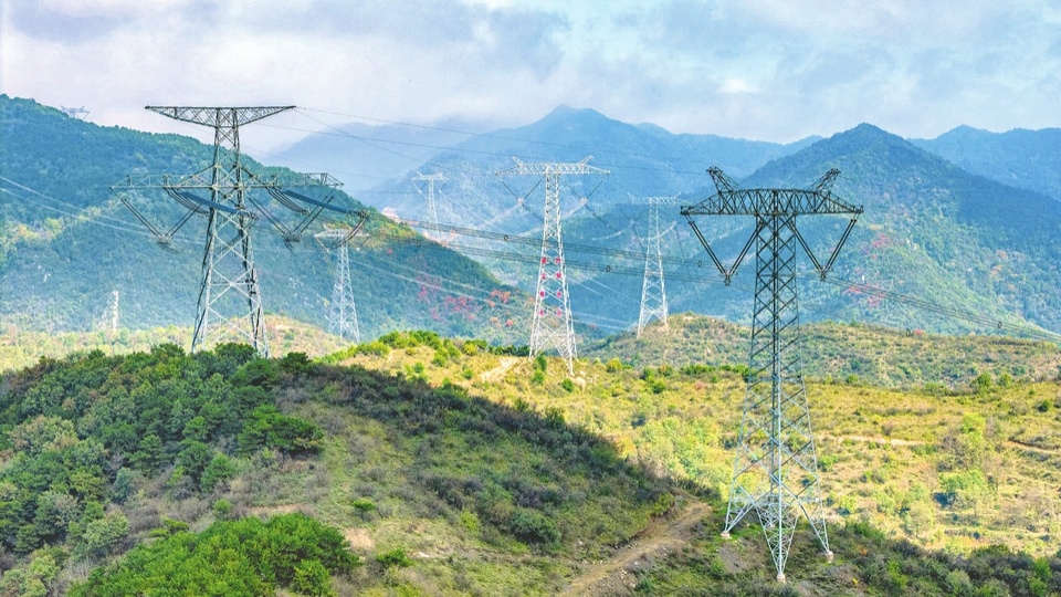 中条山上,±800千伏灵绍线特高压直流输电工程铁塔耸立于此。