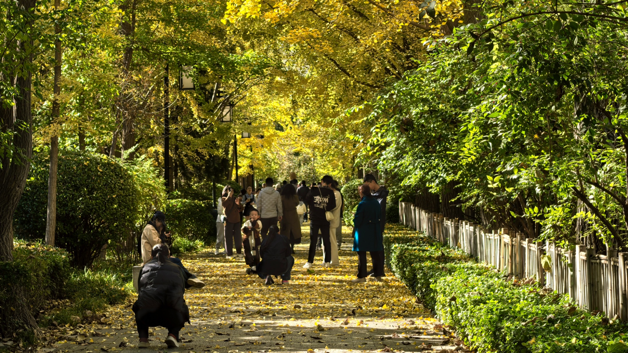 五彩斑斓的秋景如诗如画,吸引市民和游客前来观赏打卡,享受秋日美好时光。