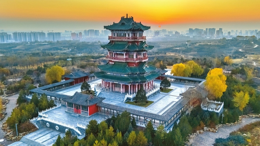 冬日暖阳将古朴的晨曦阁装扮得明艳亮丽。