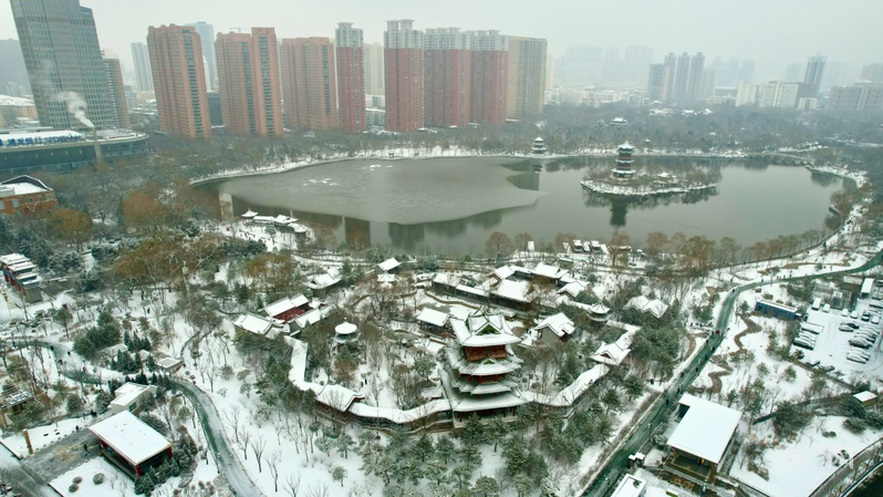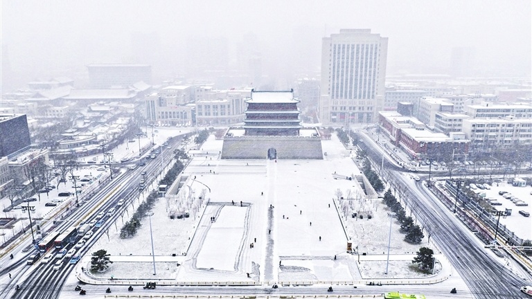 “雪下即清” 山西太原城管部门出动千余台设备除积雪