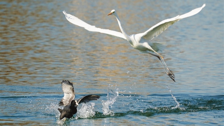近年来,随着汾河流域生态环境不断改善,越来越多的候鸟选择在这里栖息越冬。