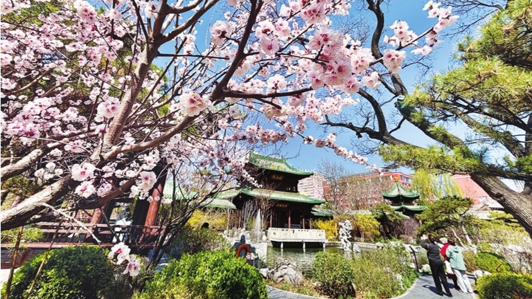 春和景明,花事渐盛,太原市各景区迎来众多游客。