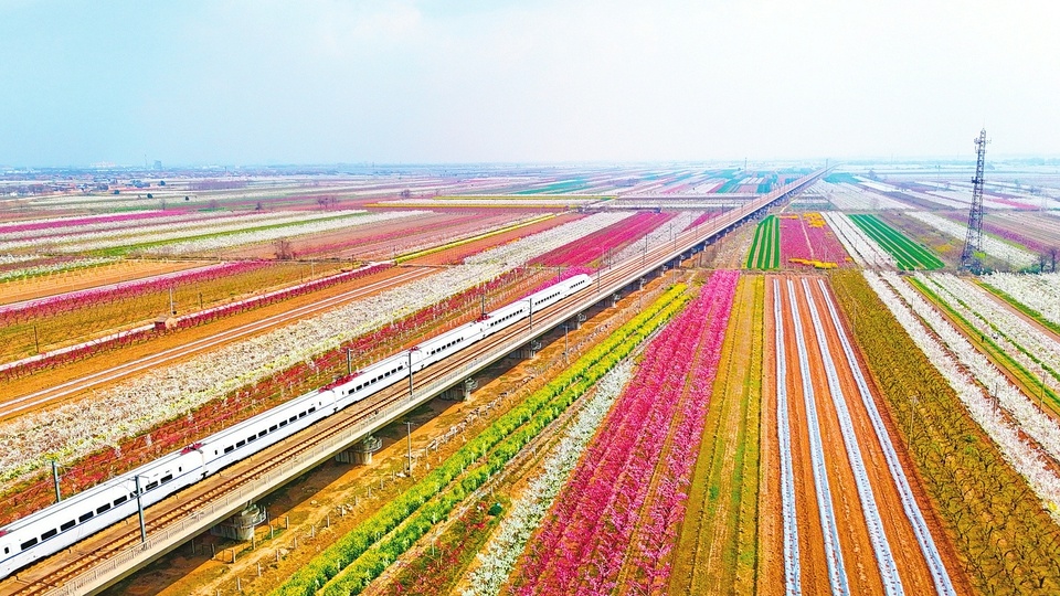 花海列车穿行处 春满三晋暖人间