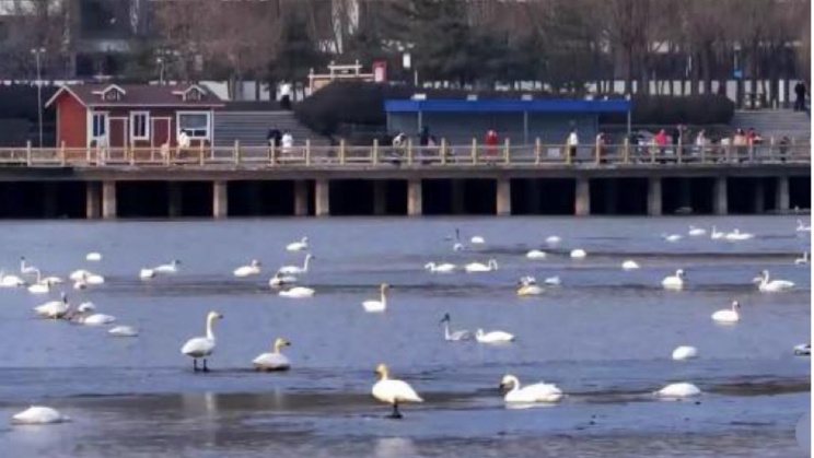 这是恢河公园建成以来,首次迎来如此大规模的天鹅种群。
