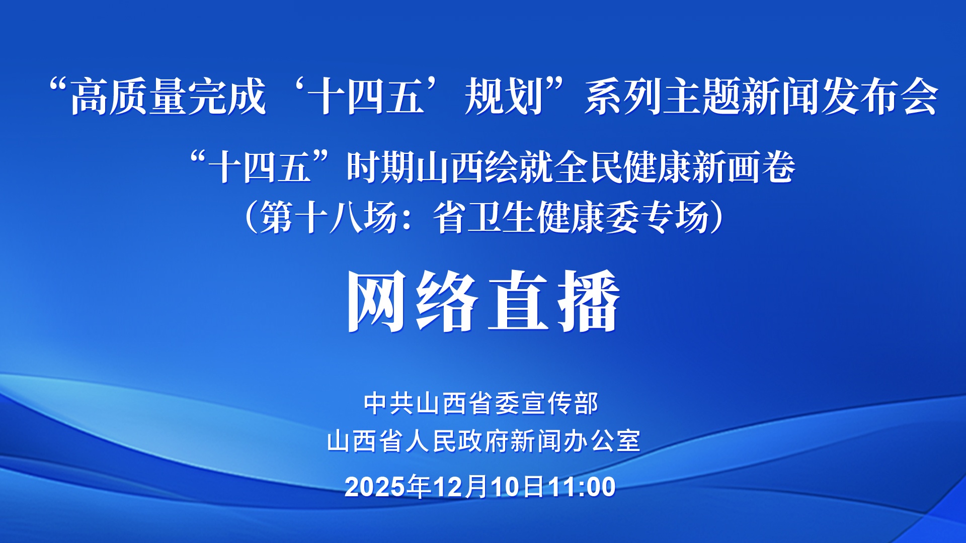 山西卫健委相关负责人将介绍“十四五”时期山西卫健事业发展成就,并答记者问。