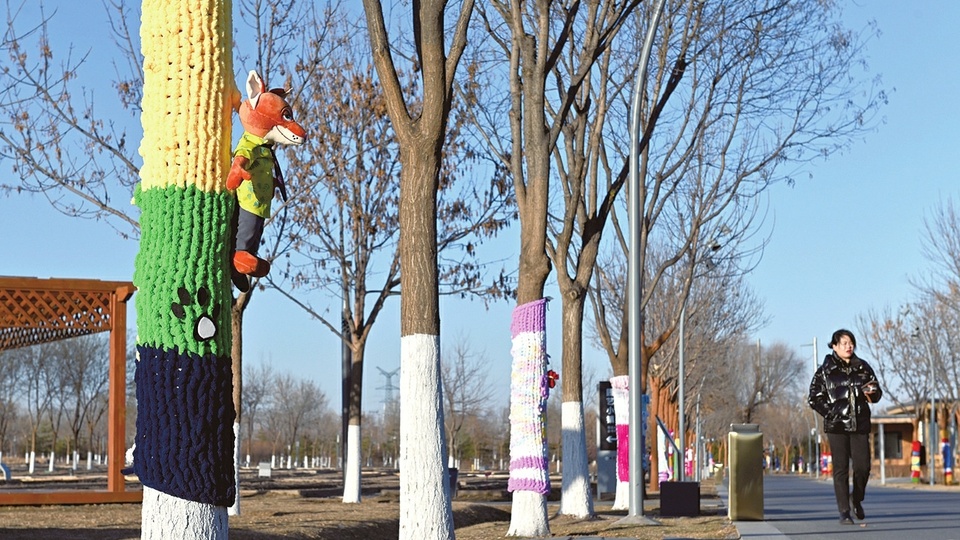 太原植物园内大树穿“新衣”