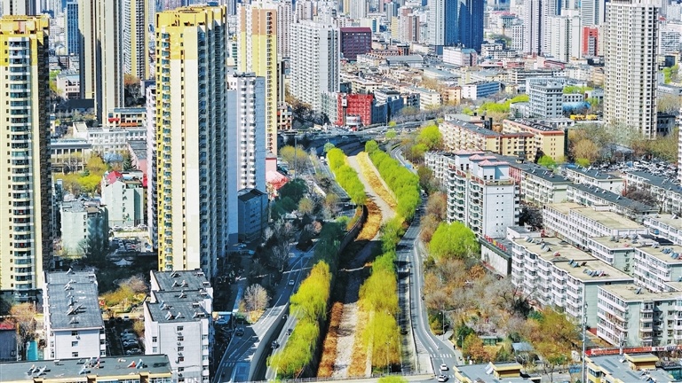天空湛蓝,南沙河沿岸柳树泛绿,一幅动人的春日画卷徐徐展开。
