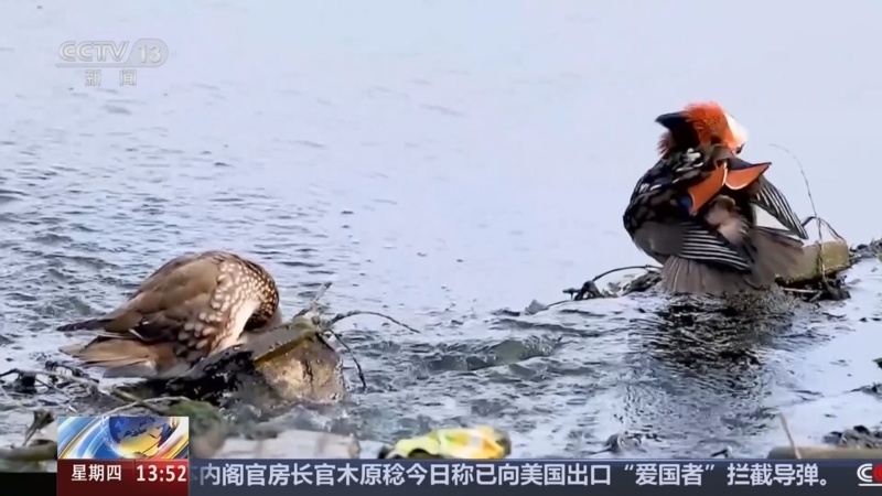 山西平定鸳鸯组团越冬 上演“冬日浪漫”