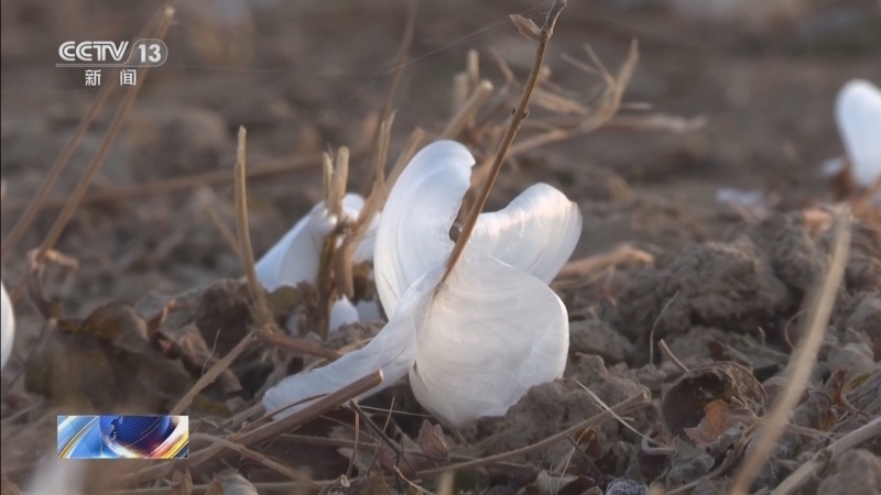 山西运城:气温持续走低 田野里现“冰蝴蝶”