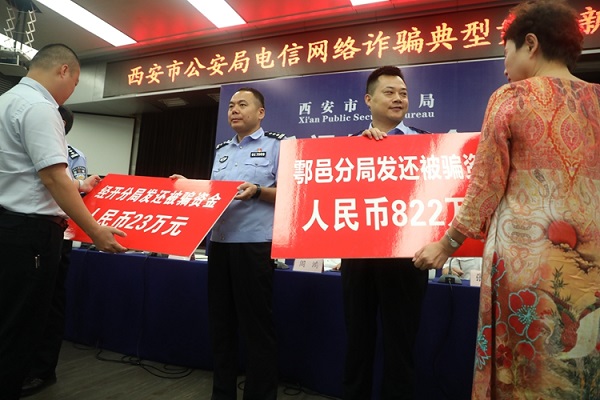 网购骗退款、购物网站兼职暴富、冒充客服诱人打款、冒充公检法人员窃取取款密码、冒用QQ、微信熟人诈骗……7月31日在西安市公安局召开的“2018年打击电信诈骗情况发布暨最新案例通报会”上,西安警方发布了一批最近破获的电信网络诈骗典型案例,案件受害者被骗金额少则30万元,多则1100万余元,诈骗犯罪心狠手辣,受害人损失惨重。