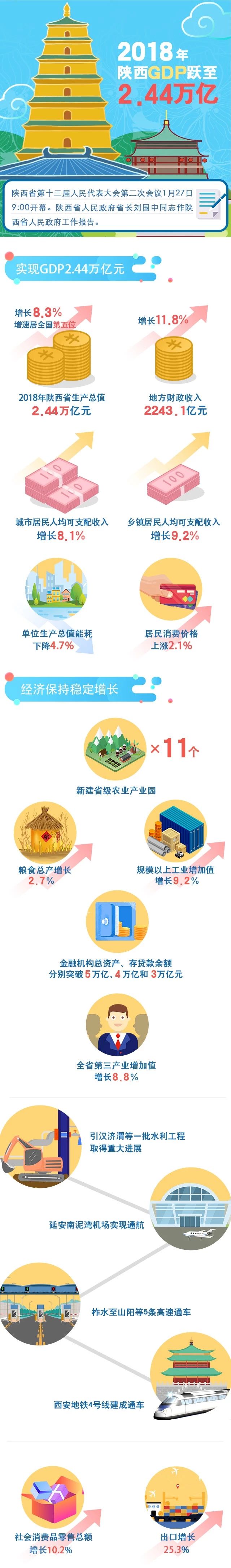 2018年,陕西省国内生产总值2.44万亿元、增速8.3%