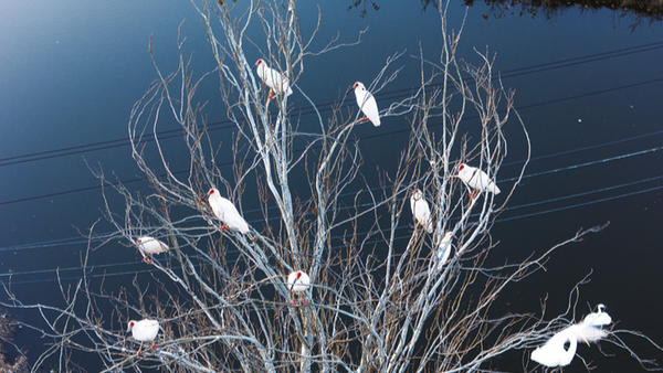 近日,在眉县首善街道渭河沿岸的槐树林区域,摄影爱好者首次观测到大规模朱鹮集群,单日最高观测纪录达到23只。
