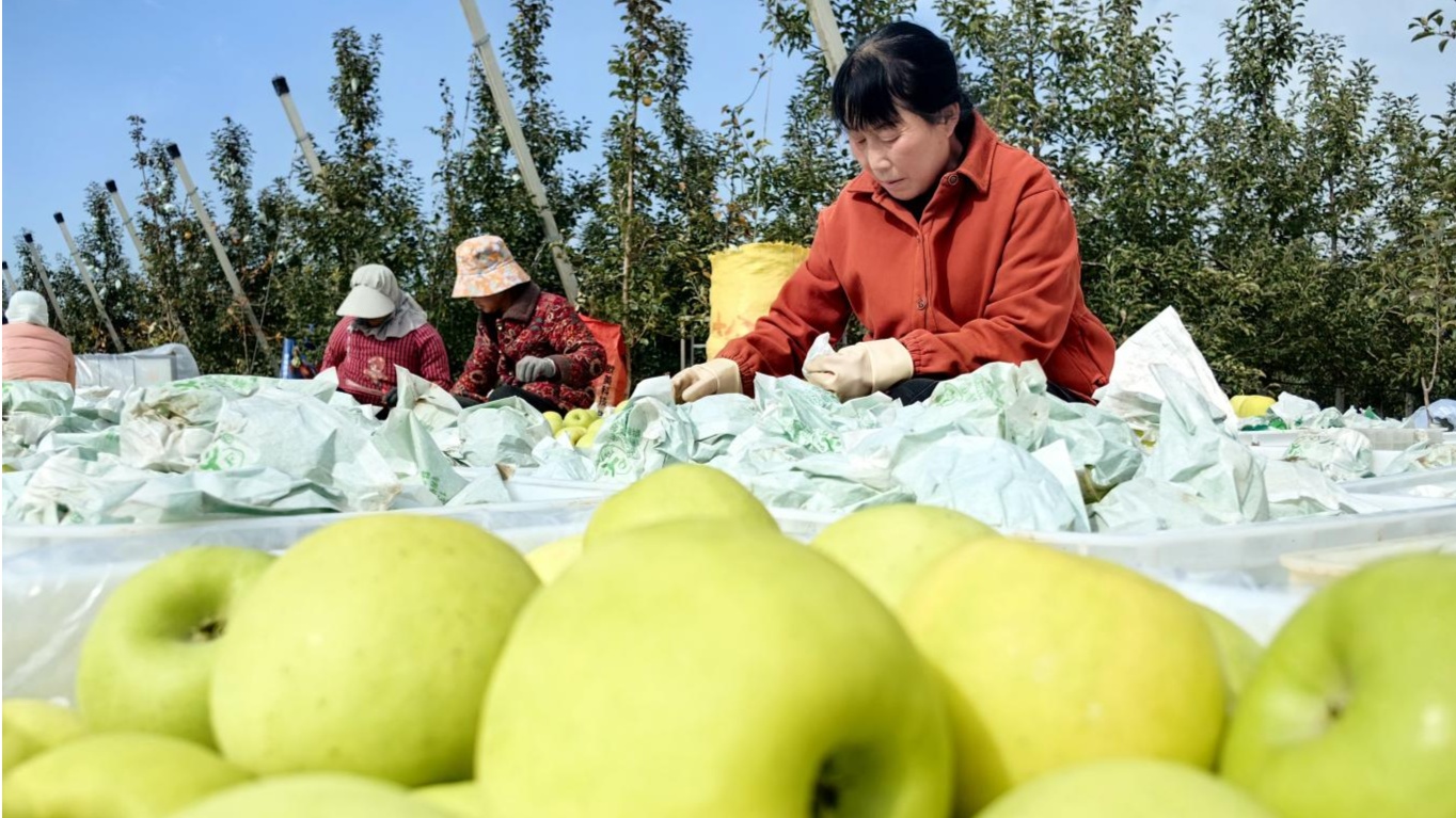 记者近日在陕西省榆林市横山区看到,位于毛乌素沙地南缘的山峁迎来苹果采摘季,昔日“荒沙梁”如今成了“花果山”。