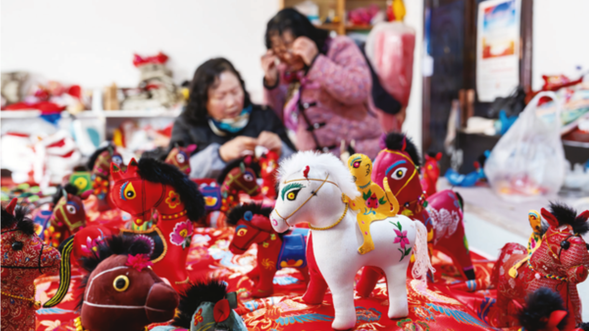 憨态可掬的小马形象搭配“马上有钱”“马上有福”等吉祥寓意,针线穿梭间尽显非遗魅力,颇受消费者青睐。
