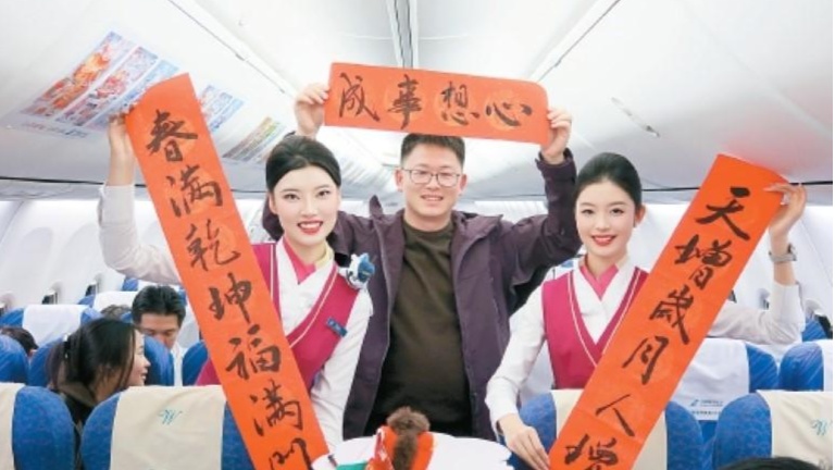 春运期间,中国南方航空西安分公司精心打造的CZ8061西安—阿拉木图“木棉新禧”主题航班顺利启航,让中外旅客在丝绸之路的万米高空,感受中华传统年俗的独特魅力。