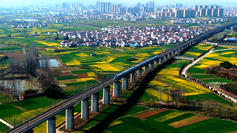 高铁驰花海 春风载梦来