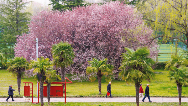 近日,春风拂过渭水之滨,城区化作绚烂调色盘,景致如画。