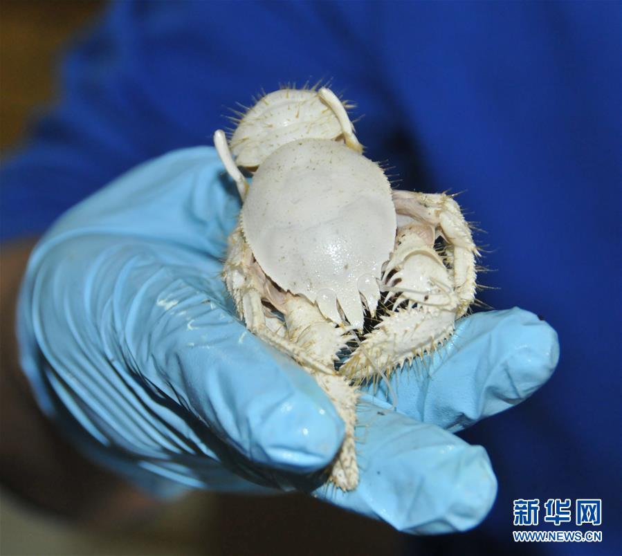 这是“蛟龙”号在南海一冷泉区采集到的毛瓷蟹(2013年7月9日摄)。 16世纪人类进入海洋,21世纪人类深入海洋。经过长期努力,特别是党的十八大以来,以“蛟龙”号载人潜水器、“科学”号科考船投入应用为代表,我国快速挺入“国际深海俱乐部”。一批批海洋科考的“神工巧匠”前赴后继、齐心勠力,驾驭着各式国产“神器”,将一幕幕深海“神奇”呈现在世人面前…… 新华社记者 张旭东 摄 -