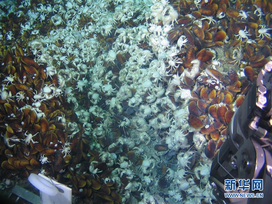 这是通过“蛟龙”号载人潜水器获得的海底毛瓷蟹(白色)和贻贝(褐色)图像(2013年6月17日摄)。 16世纪人类进入海洋,21世纪人类深入海洋。经过长期努力,特别是党的十八大以来,以“蛟龙”号载人潜水器、“科学”号科考船投入应用为代表,我国快速挺入“国际深海俱乐部”。一批批海洋科考的“神工巧匠”前赴后继、齐心勠力,驾驭着各式国产“神器”,将一幕幕深海“神奇”呈现在世人面前…… 新华社发 -
