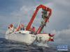 “向阳红09”科学考察船吊起“蛟龙”号载人潜水器(2013年7月3日摄)。 16世纪人类进入海洋,21世纪人类深入海洋。经过长期努力,特别是党的十八大以来,以“蛟龙”号载人潜水器、“科学”号科考船投入应用为代表,我国快速挺入“国际深海俱乐部”。一批批海洋科考的“神工巧匠”前赴后继、齐心勠力,驾驭着各式国产“神器”,将一幕幕深海“神奇”呈现在世人面前…… 新华社记者 张旭东 摄