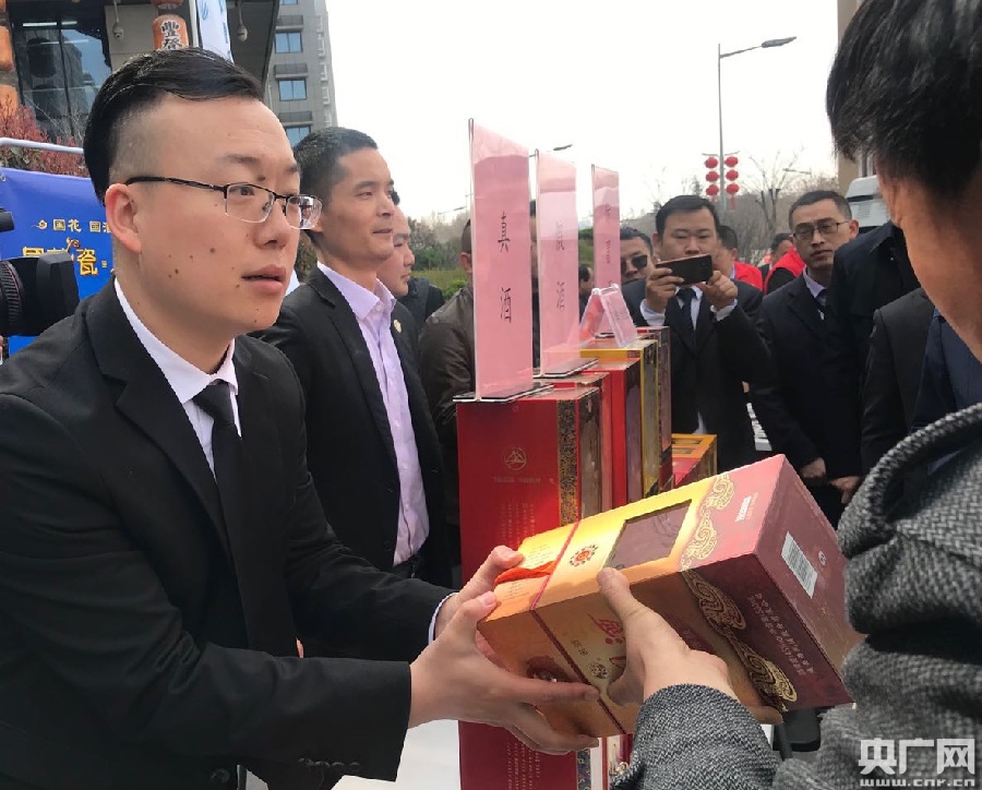 酒厂工作人员现场演示如何辨别真假酒 刘昱摄
