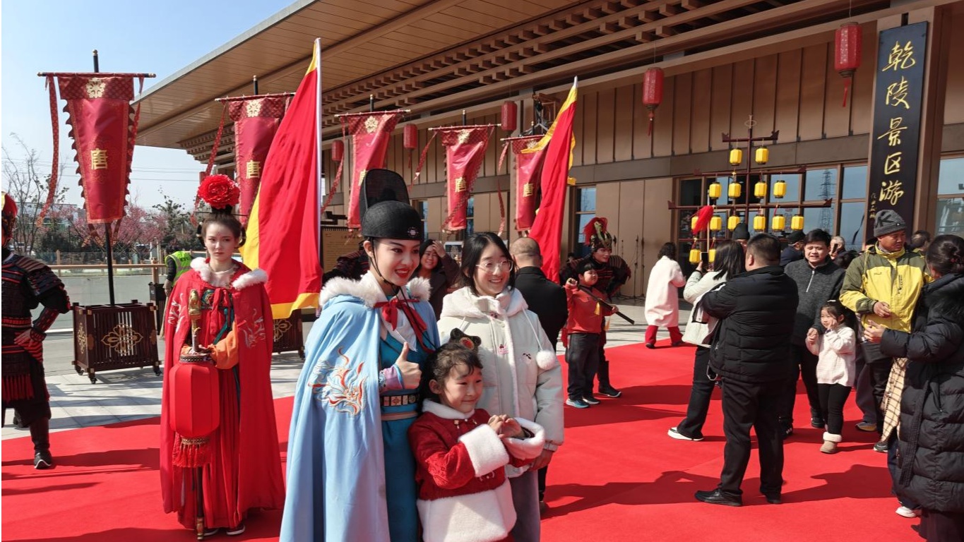 2月18日,大年初二,乾陵游客服务中心广场游人如织。融合唐文化与现代科技的各类精彩表演轮番上演,让游客目不暇接。