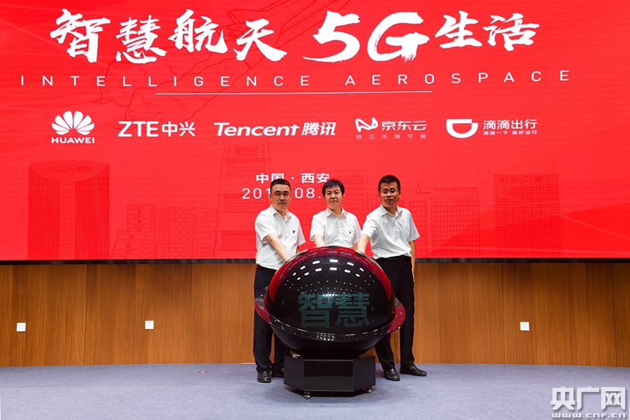 央广网西安8月29日消息(记者舒隆焕)8月28日,西安航天基地与中国移动西安分公司、中国电信西安分公司、华为、中兴通讯、腾讯、京东云、滴滴等多家企业就打造“智慧航天?5G生活”签约。各方将通过整合资源,在建设5G联合创新实验和展示环境等多领域展开合作。