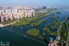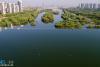 夏日清晨,行走在浐灞国家湿地公园野趣区原木搭建的便桥上,呼吸着郁郁葱葱的树木释放出的富含负氧离子的清新空气,神清气爽。绿油油的水葱随风摇曳,点点露珠折射着初升的日光,间或水鸟飞起,惊起涟漪阵阵。早起的市民在岸边漫步、健身、骑自行车……这是西安城市绿肺浐灞清晨的一幅和谐美景。无人机视角下美丽的浐灞生态区,浐河湖面清澈,两岸一片绿色盎然。新华网 申博望 摄 文/秦新强 -