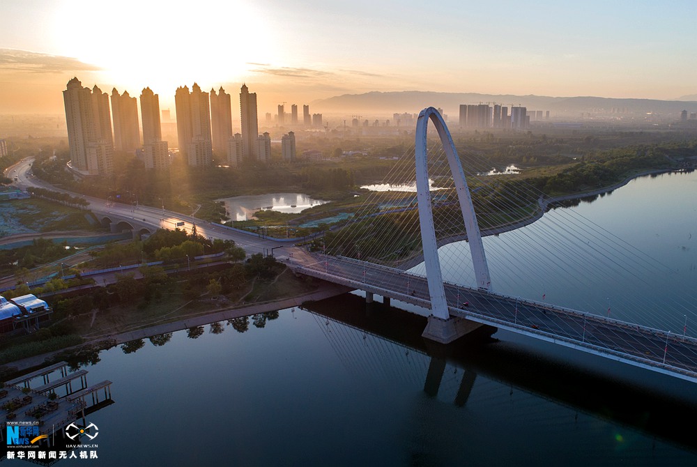 2012年以来,浐灞生态区以每年开放一个公园的速度,实现了“绿色接力”。已先后建成开放西安世博园、浐灞国家湿地公园、桃花潭公园、浐灞滋水公园、雁鸣湖休闲公园五大生态公园。无人机视角下的浐灞二号桥,清晨太阳在浐灞生态区升起。新华网 申博望 摄 文/秦新强 -