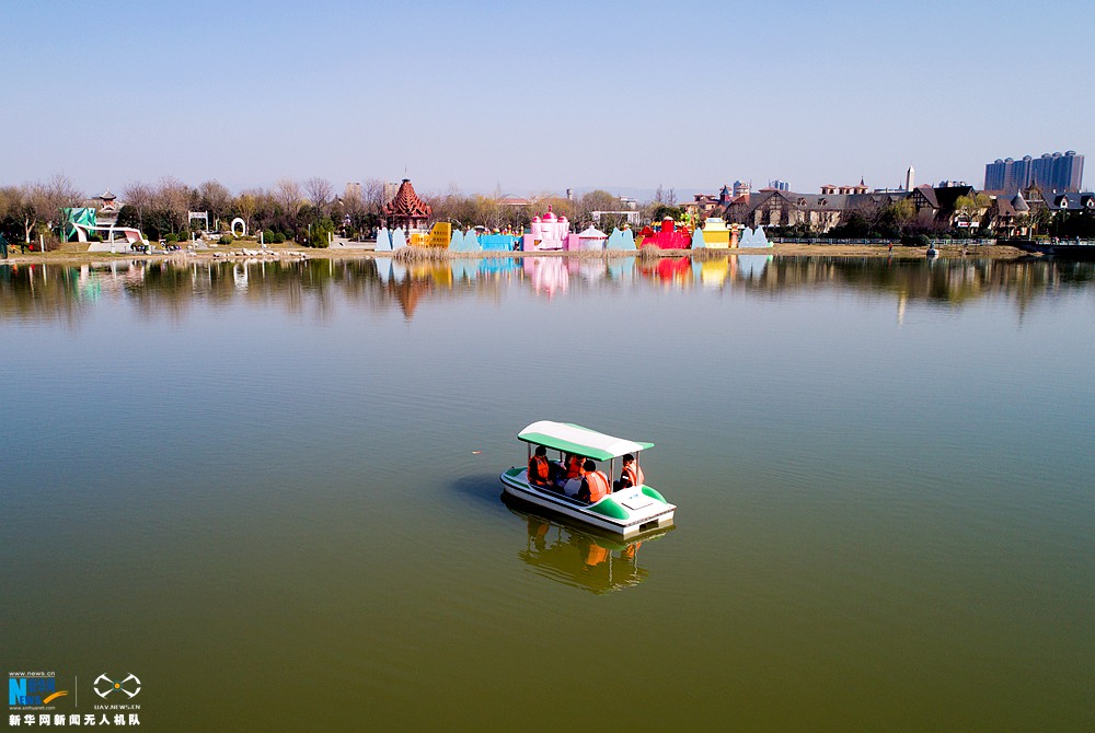 从浐灞广运潭、唐城曲江池到沣河斗门水库、未央汉城湖,城市水系新格局正在形成,西安市围绕“加快生态文明建设”和“五位一体”发展战略高度、着眼“一带一路”战略布局,坚持柔性治水,“八水润长安”正在逐步成为现实,为经济发展打下了坚实基础。无人机视角下的世博园,游客在小湖里划船。新华网 申博望 摄 文/秦新强 -