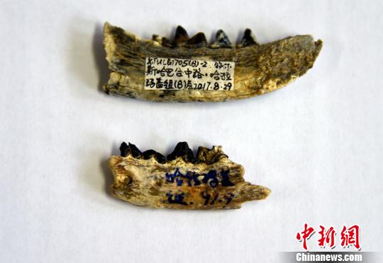 中国首次发现刃貂化石———来自新疆乌伦古河流域哈拉玛盖组(下)和可可买登组(上)的刃貂化石标本。 孙自法 摄