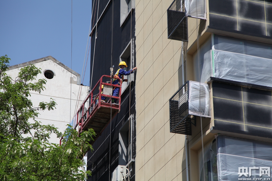 明德门北小区正在改造施工(央广网记者 舒隆焕 摄)