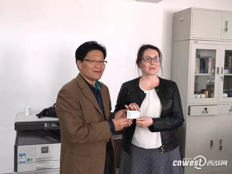 西部网讯(记者 鄢山宇)4月以来,外国人来华工作许可制度在陕西省全面实施。今后外国人来陕西省工作,不再区分“专家许可”和“就业许可”,一张《外国人工作许可证》即可。今天,西北大学的法国教师RIOU VALERIE SANDRA ALEXANDRINE从陕西省外国专家局副局长樊瑛华手中接过了《中华人民共和国外国人工作许可证》,成为陕西省领证第一人。
