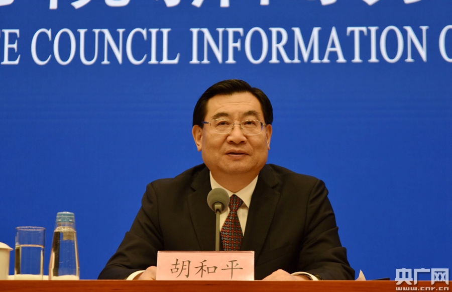 中共陕西省委书记、陕西省人大常委会主任胡和平介绍情况 央广网记者 刘昱 摄