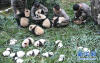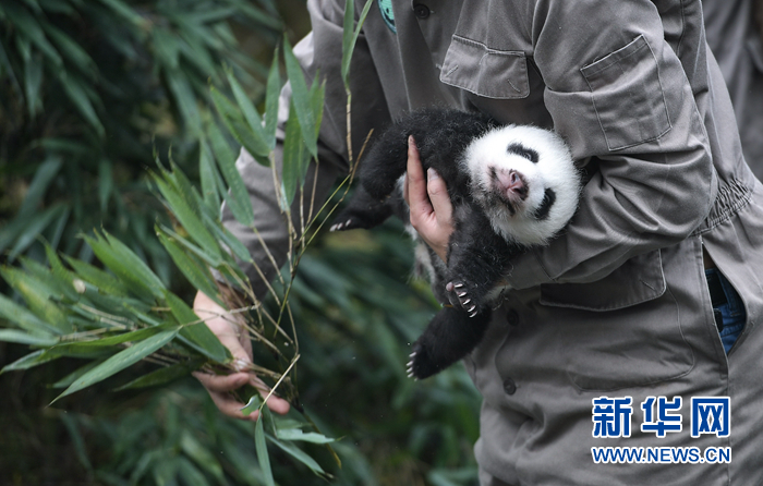 新华社成都10月13日电(袁秋岳)中国大熊猫保护研究中心2017年新生大熊猫宝宝13日分别在雅安碧峰峡基地、卧龙神树坪基地亮相。至此,该中心今年已经繁育大熊猫30胎,成活42仔,数量创新高。这是10月13日在中国大熊猫保护研究中心雅安碧峰峡基地拍摄的2017年新出生的大熊猫宝宝。新华社记者 薛玉斌 摄 -