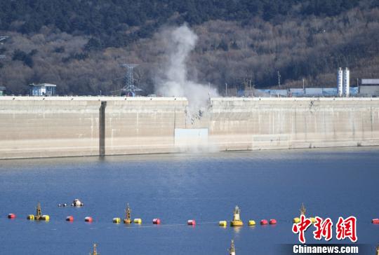 中新网吉林12月12日电 (记者 苍雁)运行了80年之久的丰满水电站老坝结束了它的历史使命。12日,随着爆炸声和烟尘的腾起,丰满水电站老坝拆除工程成功实施首次爆破。